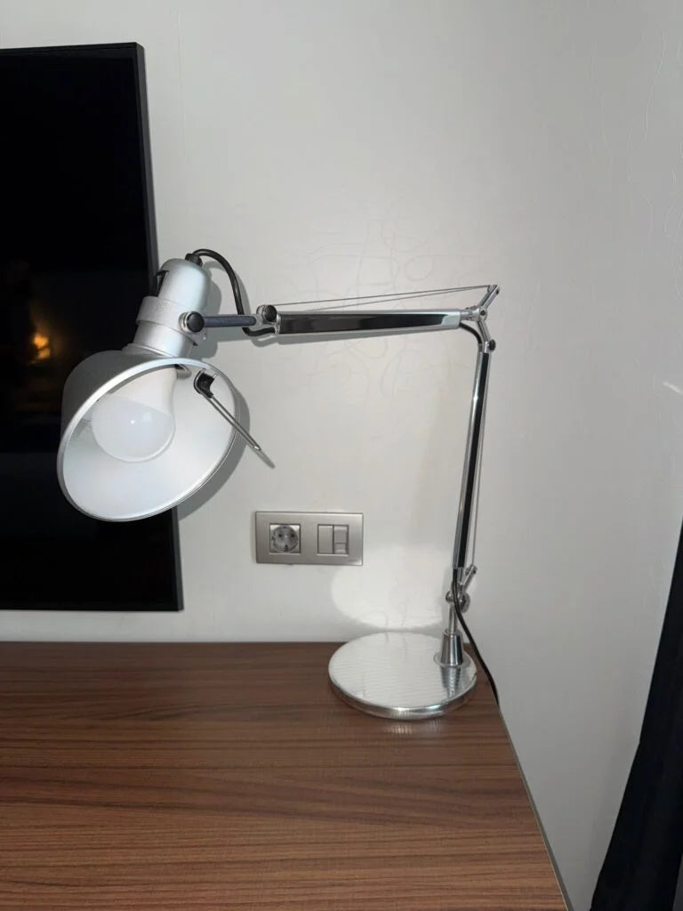 Ideal para escritorio, zona de trabajo o estudio, esta lámpara combina practicidad y diseño atemporal, encajando sin dificultad en espacios modernos u oficinas. Una pieza versátil y cómoda para el día a día.